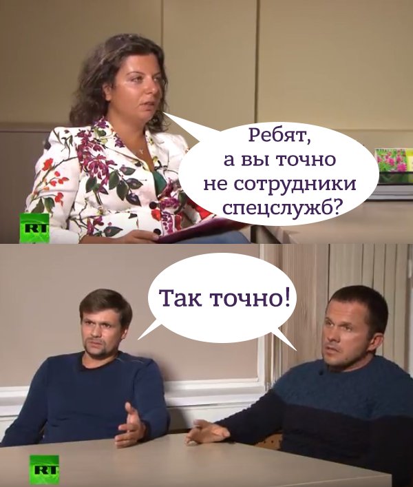 І до інтерв'ю вся ця історія вражала масштабами дилетантизму як передбачуваних співробітників російських спецслужб, так і примітивністю «відмазок» пропагандистів і представників влади, які заперечують будь-яку участь Росії в отруєнні Скрипаль. Але публічну розмову з двома «підприємцями середньої руки», які приїхали в Солсбері, щоб «подивитися на шпиль собору», але так до нього і не дістався, та ще й укупі з натяками на гомосексуальні відносини парочки стали апофеозом некомпетентності.