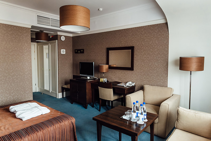 Бережна реконструкція в 2008 року не зіпсувала історичний вигляд будівлі, але дозволила створити комфортні умови для проживання. Сьогодні кожен з 28 просторих номерів готелю оснащений відповідно до сучасних норм: тут є супутникове ТБ, безкоштовний Wi-Fi, телефон, повний санвузол, кондиціонер, холодильник, сейф і робочий стіл, надаються халат і тапочки.