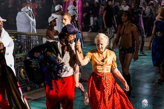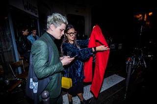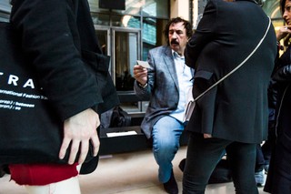 Я беспечно спрашиваю его, знает ли он, куда отправиться на неделю моды. Он вытаскивает неухоженный лист бумаги, на котором написаны помеченные адреса: «Дворец Брогнияр». Я на его карте местоположений, делая запись Вивьен Вествуд завтра, прежде чем, внезапно, его позвоночник выпрямляется. "Commes Des Garcons, посольство России!" Он стучит по часам и открывает боковую сумку, позволяя мне взглянуть на костюм Владимира Ленина: «Я должен переодеться!»