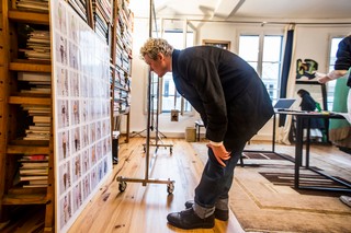Человек, одетый с ног до головы в джинсовой ткани, держащий поясную пряжку, как разведчик, смотрит на меня без выражения. Я вручаю ему карточку и спрашиваю, что он сделал из шоу. «Я смотрел шоу отсюда». Он указывает на то, где он стоит.