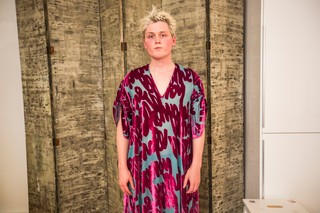 «Мне нужно увидеть тебя в этих». Немецкая модель мужской одежды Жан берет брюки Певиани и исчезает за занавеской.