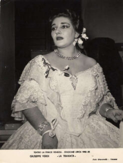 Рівно через 10 років після того, як вона зайнялася музикою і вокалом в афінській консерваторії Маноліса Каломіріса, Марія Каллас співала головну роль у Вероні в опері «Джоконда» Понкіелі. Співала на своєму улюбленому італійській мові, за любов до якого її затаврували в Греції «фашистської пособниця».