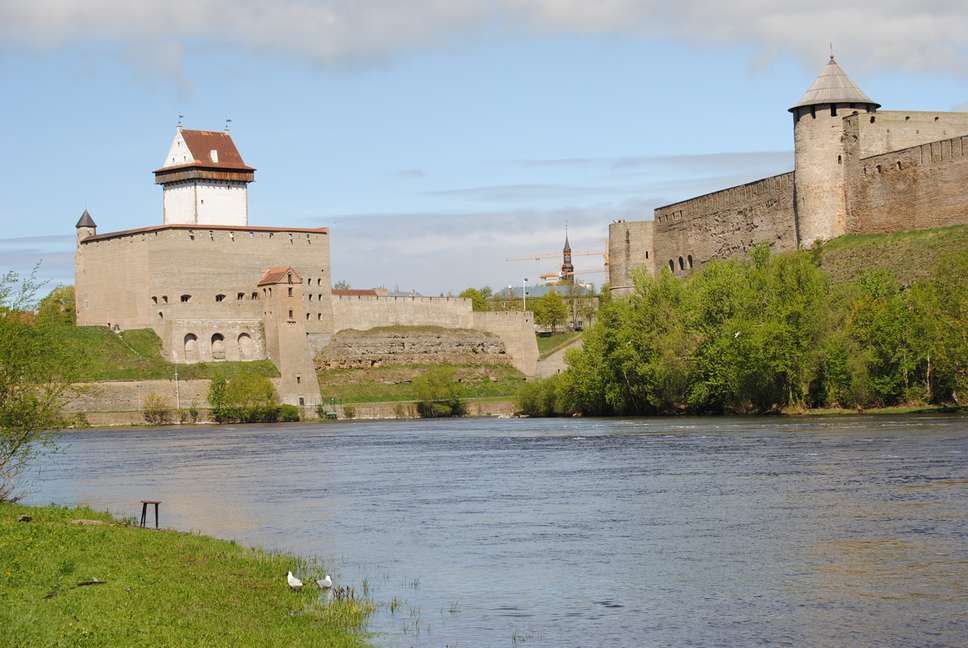 Отже, з головними воротами Естонії на схід, мостом Нарва - Івангород все досить очевидно і всім відомо. Тут йдуть і автобуси Санкт-Петербург - Таллінн, тут же черги з автомобілів, тут і піший перехід. З моста гарні краєвиди на обидві фортеці, втім, набагато кращі види відкриваються безпосередньо з естонської сторони, трохи на північ від ж.д моста через Нарву, ось звідси -