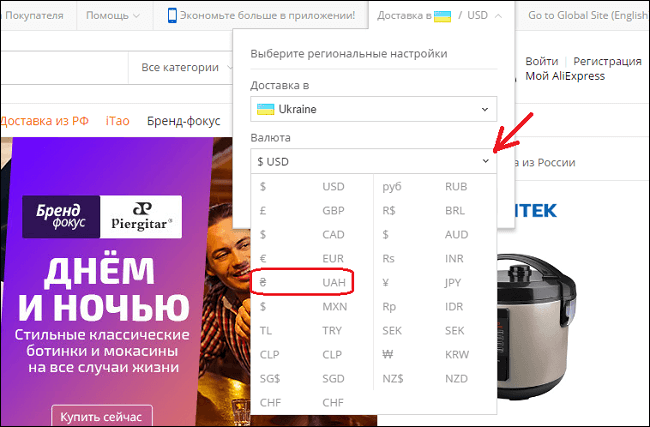 Як на Аліекспресс перевести ціни з доларів на гривні
