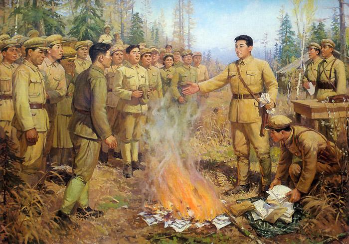 На стадіоні Пхеньяна 14 жовтня 1945 року влаштували мітинг на честь Червоної армії. Командир 25-ї армії генерал Чистяков вивів Кім Ір Сена і пояснив, що це - знаменитий партизанський вождь, народний герой, одним словом, авторитетний хлопець, якого корейським комуністам слід шанувати як батька рідного.