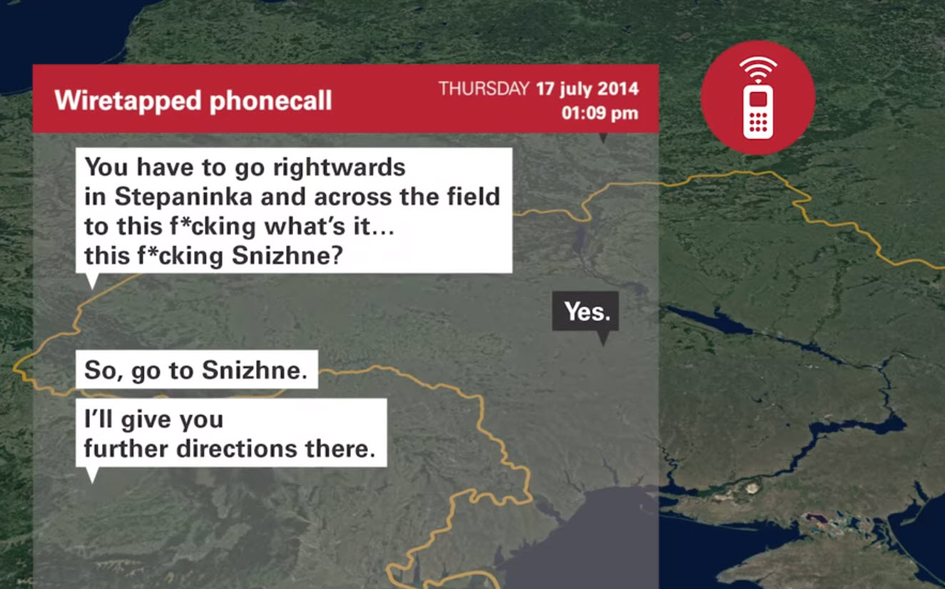 Нарешті, що найочевидніше, слід вказати на перехоплені переговори командирів РФ і «ДНР» від середини липня 2014 р, де обговорюється прибуття «Бука» в цей район для захисту від постійних українських авіаударів. Дубинський згадує активність українських ВПС в районі Маринівка, яка перебувала в радіусі ураження ракет «Бука» з місця пуску ракети.
