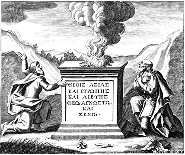 Щоб нічого не залишалося поза увагою надприродних сил, стародавні греки вигадали концепцію Безіменного (або «невідомого») бога - Агностос Теос. Цей бог-местозаніматель зізнавався покровителем всього, про що автори релігії забули згадати, поселивши на Олімпі дюжину головних божеств і безліч другорядних. В Афінах невідомому Богу був дарований храм.