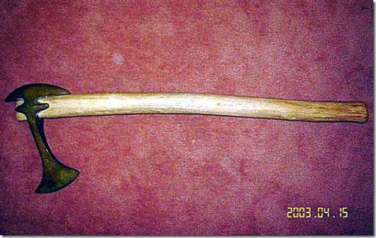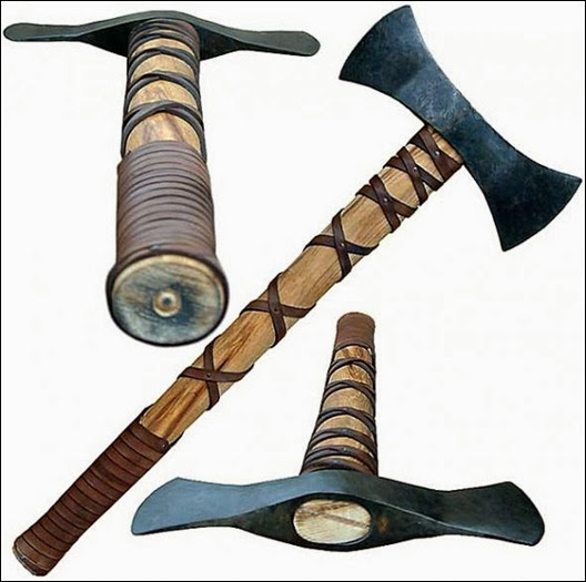 ними ж ще з часів Троянської війни активно боролися стародавні греки, використовуючи як звичайний, так і двосторонній сокиру.