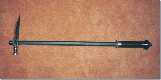 Він мав дуже невелике лезо довжиною близько 7 см і мініатюрний обух і служив як сокирою, так і тростиною.