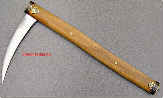 а злегка зігнутий і заточений тільки зсередини (знизу) клевець трансформувався в бойовий серп.