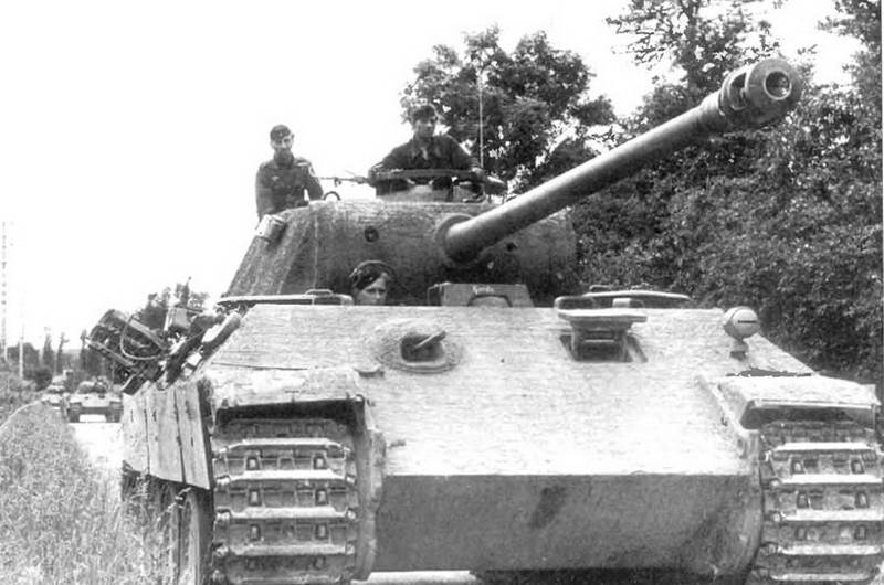 Колона танків «Пантера» Ausf.A зі складу Навчальної танкової дивізії Вермахту на підході до району бойових дій.