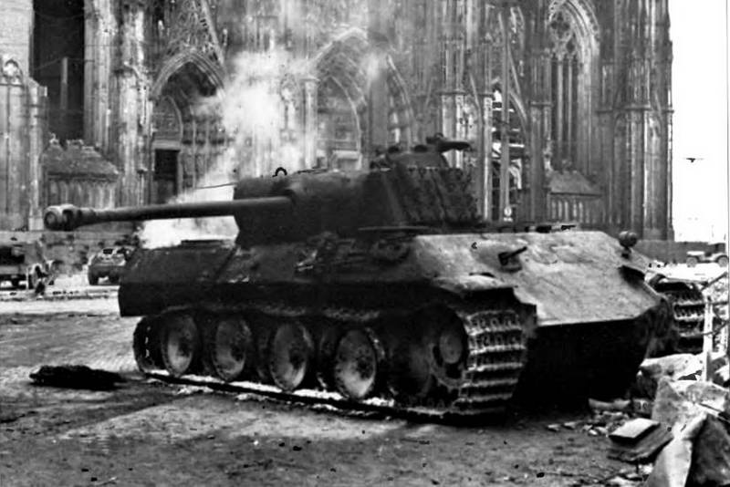 «Пантера * Ausf.A, догоряє на площі перед Кельнським собором. 1945 рік.