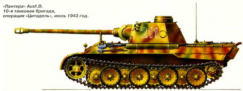 «Пантера» Ausf.D пізнього випуску. Ця машина має багато рис, характерні для Ausf.A, - одну фару на лобовому аркуші, нову командирську башточку, відсутність люка для викиду стріляних гільз в лівому борту башти і т.д.