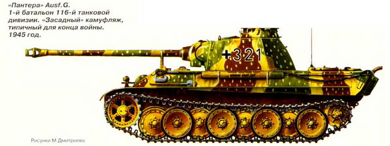 Слід зазначити, що ціною величезної напруги сил німецька промисловість в 1945 році змогла дати фронту 507 «пантер». На 1 березня 1945 року в розпорядженні німецьких танкових частин перебувало 1 763 лінійних танка «Пантера», 169 командирських машин і 256 БРЕМ. Однак стрімко погіршується ситуація на фронтах звела нанівець всі зусилля промисловості. На 28 квітня в військах залишалося таку кількість бойових машин: Східний фронт - 446 (з них тільки 288 боєздатних). Західний фронт - 29 (24 боєготових), Італія - 24 (23 боєготових). А ось як виглядали справи в різних танкових з'єднаннях. У знаменитій Навчальної танкової дивізії, яка перебувала в той момент на Західному фронті, залишилося тільки сім «пантер». 26-а танкова дивізія в Італії мала 24 танками цього типу. У 10-ї танкової дивізії СС «Фрундсберг», що діяла на центральній ділянці Східного фронту, було 34 «пантери», і вона вважалася однією з найбільш боєздатних. Значно гірше було на південній ділянці, де в складі трьох танкових дивізій З З «Лейбштандарт Адольф Гітлер», «Рейх» і «Мертва голова» залишилося тільки 23 «пантери».