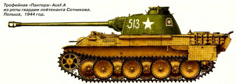 Трофейні «пантери» Ausf.A з роти гвардії лейтенанта Сотникова. Район на схід від Праги (передмістя Варшави), 1944 рік.