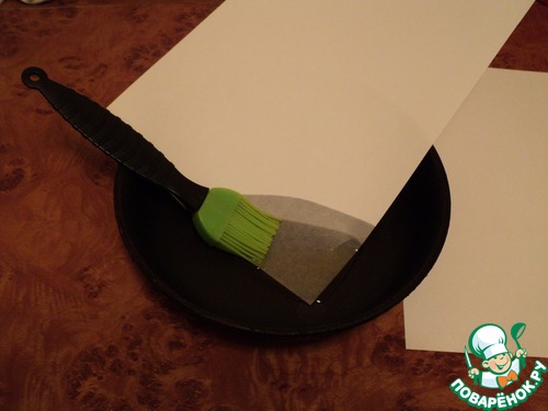 Щоб не використовувати пергаментний папір для прошарку взагалі і отримати при цьому в міру рум'яний пиріг потрібної форми, гарненько змастіть деко маргарином або вершковим маслом.