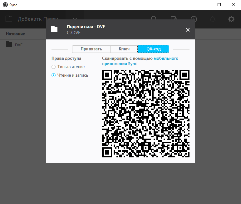 Потім ви побачите, що список папок порожній. Виправити це дуже просто - натисніть кнопку Додати папку. Виберіть папку (в нашому випадку - це C: \ DVF), після чого Sync запропонує встановити параметри доступу до папки.