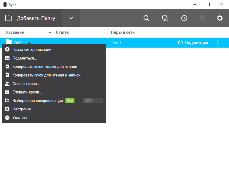 У настільної версії керування синхронізацією здійснюється за допомогою контекстного меню папки (рис. 25). Назви команд цілком зрозумілі і не потребують будь-яких пояснень.