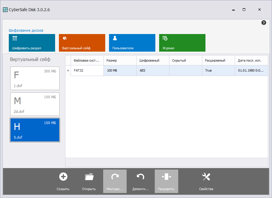 Після створення сейфа його потрібно змонтувати. Виберіть його в розділі Віртуальний сейф, натисніть кнопку Монтувати. У вікні введіть пароль сейфа, вказаний при його створенні, і виберіть букву диска. На рис. 3 показано, що створений нами сейф був змонтований як диск H.