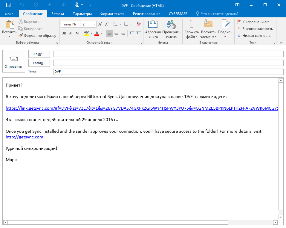 Мал. 8. Відправлення листа з посиланням