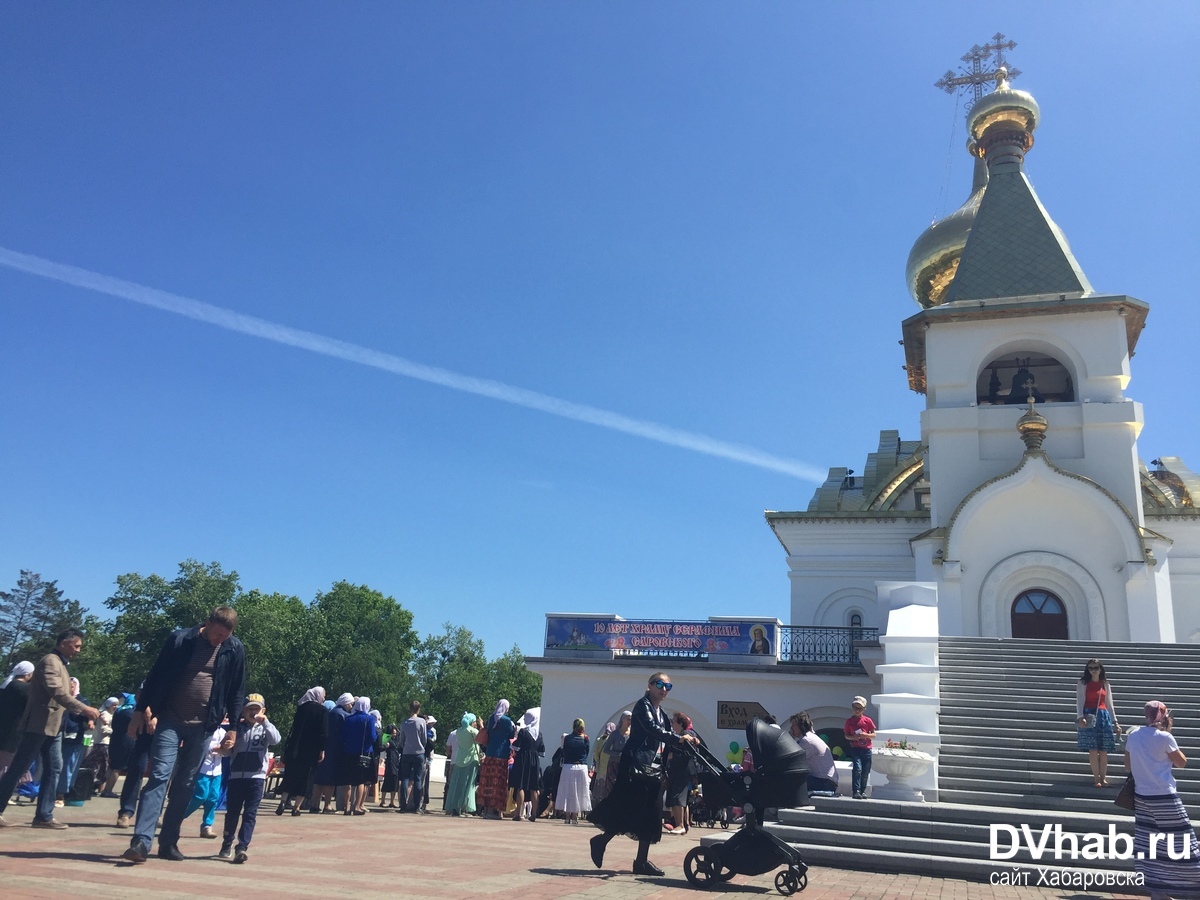 Православні віруючі Хабаровська прийшли до храму Серафима Саровського, щоб відсвяткувати його День народження. Рівно десять років тому Божий дім освятив Марк Тужиков, нині митрополит В'ятський і Слободський. З того дня громадяни щодня приходять сюди помолитися і поставити свічку. На честь ювілею була підготовлена велика концертна програма і пісні частування.