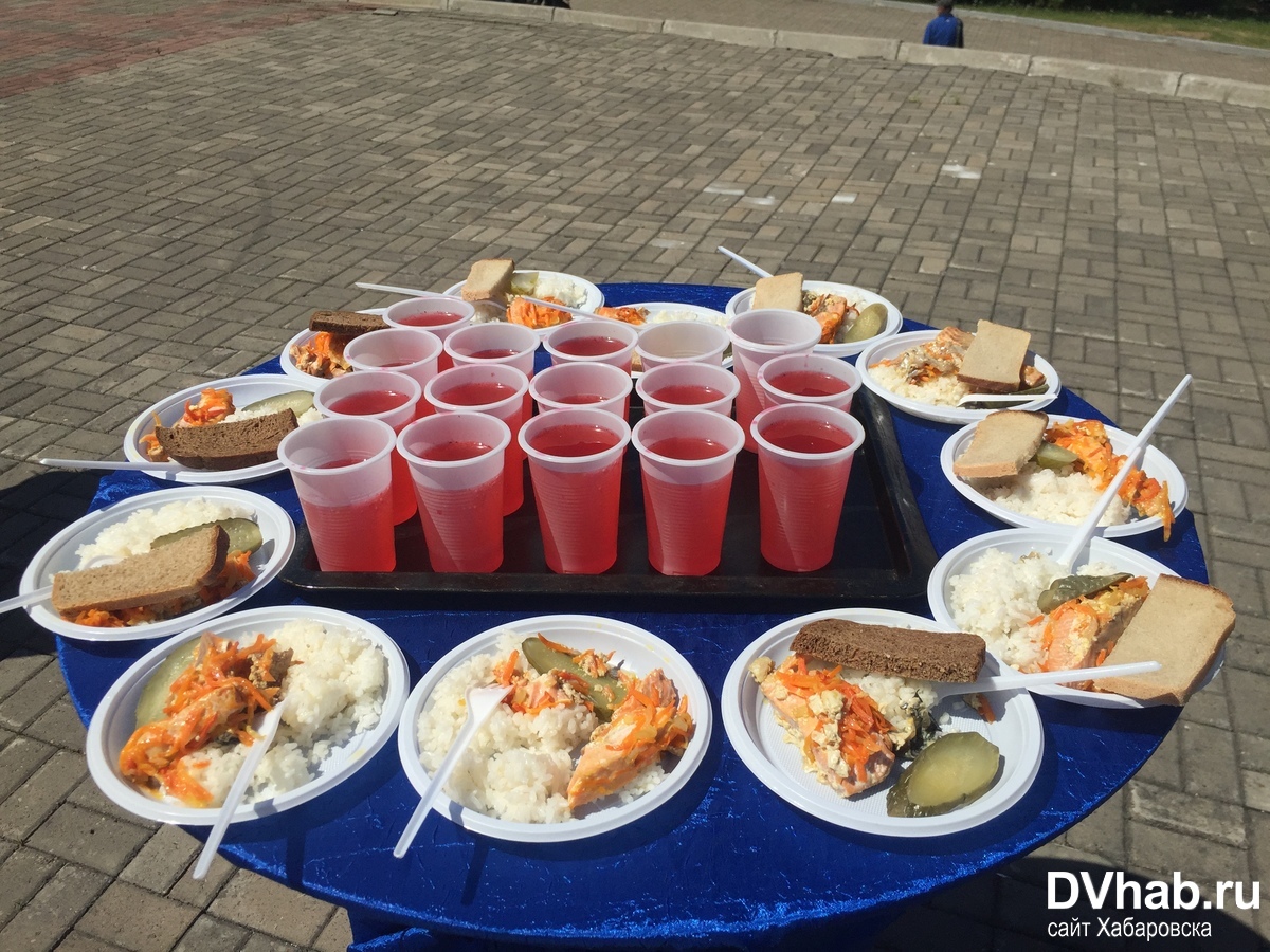 Згідно з православним календарем, зараз у віруючих християн Петрів піст. Столи ломляться від страв. В меню риба з морквою, на гарнір рис. З десерту - тістечка, печиво і цукерки. Всі бажаючі приступили до трапези, тільки після того, як страви освятив Владика.