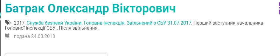 Звідти ж дізнаємося, що Олійник був главою Головної інспекції СБУ - органу, який контролює роботу всередині служби. Відзначимо, що СБУшної інспекція не користується великою пошаною серед працівників спецслужби, так як вони її вважають занадто «паперової». Також вдалося дізнатися, що буквально за кілька місяців до призначення Андрія Олійника головою УСБУ в Дніпропетровській області звільнився його перший заступник Олександр Батрак, який подав відповідну декларацію.