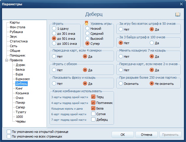 Примітка. Всі перераховані вище домовленості відносяться до Харківського добірці, але так як їх часто додають до класичними правилами гри, не називаючи Деберц харківським, тому вирішено було їх виділити окремо. Нижче при описі Харківського добірці вони дублюються.