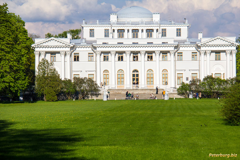 Палац Іван Єлагін побудував в 1786 році. Авторство проекту приписують Джакомо Кварнегі , Але достеменно це невідомо. Англійського типу мальовничий парк, розбитий у палацу, що включав в себе канали та ставки, містки, альтанки та інше, був спроектований англійським садовим майстром Д. Бушем.