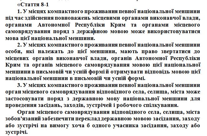 Наприклад, про те, що 12 квітня 2017 року було зареєстровано ще один законопроект «Проект Закону про внесення змін до деяких законів України щодо забезпечення розвитку і використання мов національних меншин в Україні» . Там і зовсім йдеться про те, що в місцях компактного проживання конкретного нацменшини навіть в органах місцевого самоврядування може використовуватися мова нацменшини, поряд з державною мовою. Таким чином, весь цей законопроект говорить про захист мов нацменшин, і хоча не згадується російська мова, але він, крім інших, входить в цю групу.