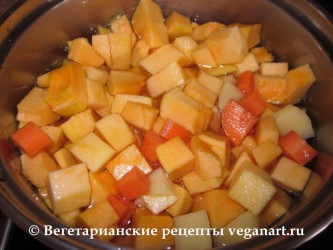 - Заливаємо наші овочі водою, солимо, перемішуємо і залишаємо варитися до готовності.