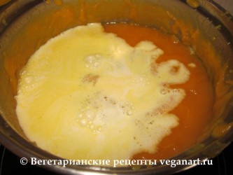 - Додаємо до майже готового гарбузовому супу-пюре вершки.