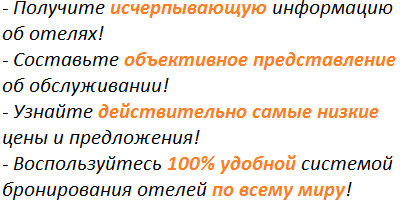 Привіт. Дякую Вам за прекрасний сервіс пошуку готелів. Планував минулого літа поїздку в Європу не по путівці. Спочатку побоювався, але потім зважився просто подивитися варіанти готелів. Дуже здивувався купі варіантів і реальної дешевизні. У підсумку, забронював 3 готелі в різних країнах. Відмінно, що в инфе до них було прописано, що є можливість безкоштовної скасування броні. Коротше, всім раджу! Ще раз дякую!