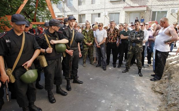 Бійці ВВ покинули будівлю, поки керівництво буде вести переговори з "новою владою". Солдати вишикувалися у внутрішньому дворику. Люди просять перейти їх на сторону ЛНР і не відкривати стрілянину.