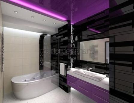 Що стосується палітри, то хай-тек вимагає граничної обережності в підборі квітів для великих поверхонь, сантехніки та меблів. Основне колірне правило даного стилю - використання ясних, глибоких тонів і повне виключення півтонів. Чорний, білий, сріблястий, сірий і металік - це все допустимі в приміщенні кольору. Звичайно ж, їх можна розбавляти фіолетовими або червоними вкрапленнями. Варто також відзначити, що маленька ванна кімната в стилі хай-тек не терпить плавних переходів між тонами, а навпаки - вимагає чіткості ліній і форм.