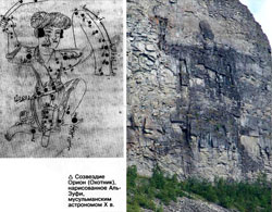 Ми про те, що, як відомо освіченому читачеві, основна маса знань про Елладі, а також її книг, дійшла до нас завдяки «зворотним» перекладам з арабського. І древні астрономічні відомості тут не виняток. Досить згадати знамениту еллінську астрономічну Велику Книгу (так з арабської перекладається «Альмагест») Клавдія Птоломея. Тому розумний читач не буде дивуватися тому, що ми пошлемося на зображення «Оріона» арабського астронома Х століття Аль-Зуфі. Воно примітно тим, що «Оріон» від Аль-Зуфі практично ідентичний зображенню Куйва з Кольського півострова (не рахуючи відсутності у останнього арабської чалми)! На цей факт першим звернув увагу індивідуальний дослідник Гіпербореї Ігор Гусєв.