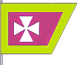 Прапор являє собою малинове квадратне полотнище з косицею в 1/2 ширини і жовтою облямівкою в 1/6 ширини, в центрі якого розміщений білий лицарський хрест в 1/2 ширини.