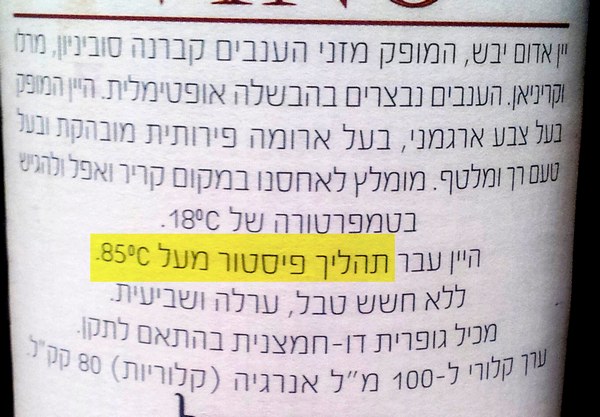 Кошерне вино не варене - яін ло мевушаль. Фото з блогу «Черевик» http://botinok.co.il