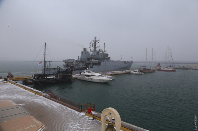 Приблизно о 10:35 його пришвартували до понтонного причалу яхт-клубу "Одеса". Це перший корабель НАТО, який відвідав Україну після нападу Росії на українські кораблі в Керченській протоці.