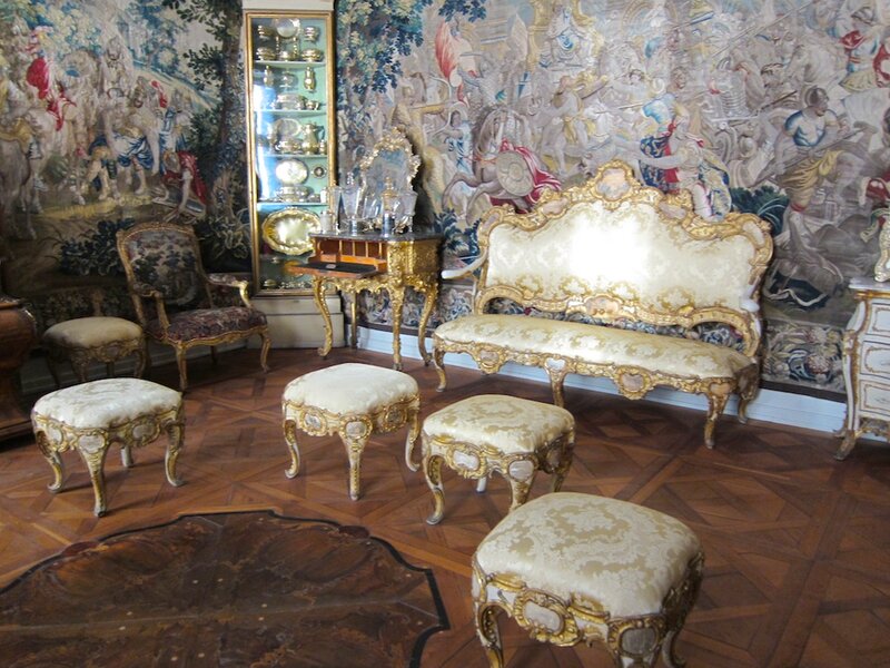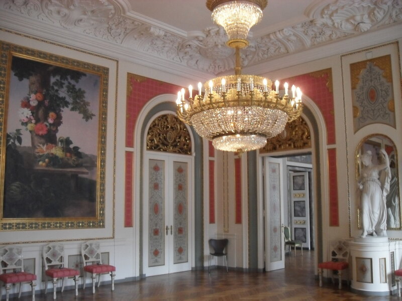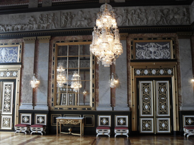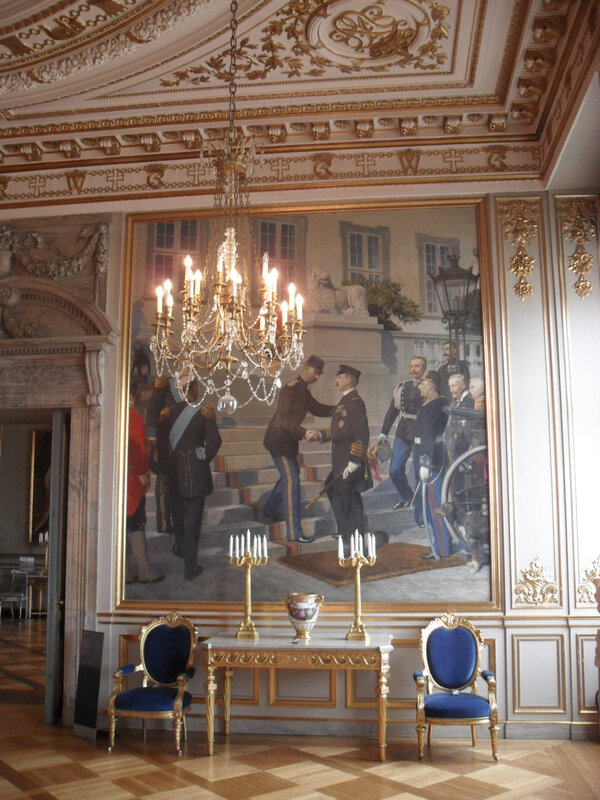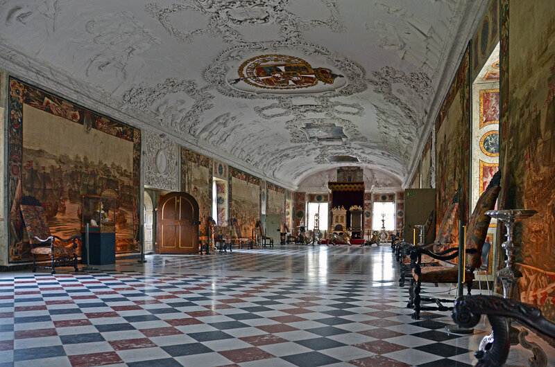 Зал просто феноменальний. На стелі - герб Данії . На стінах - 12 величезних шпалер копенгагенського виробництва, що зображують сцени переможної для Данії війни зі Швецією 1675-1679 років.
