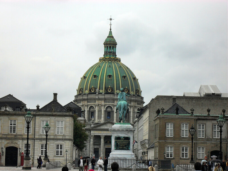 За однією з осей, розсікають площу і комплекс будівель, видно велику церкву Фредеріка, також відома як Мармурова церква (Marmorkirken):