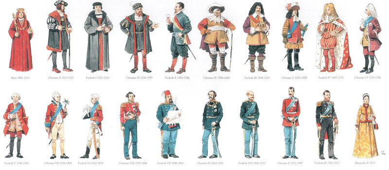 На завершення я хочу звернути увагу на той факт, що Данія зараз є найстарішим Королівством в Європі (з безперервною генеалогією). І другий за старшинством Монархією в світі, після Японії. З цього приводу продемонструю ілюстровану таблицю датських Королів і двох Корольов, виконану в «дитячому» стилі:
