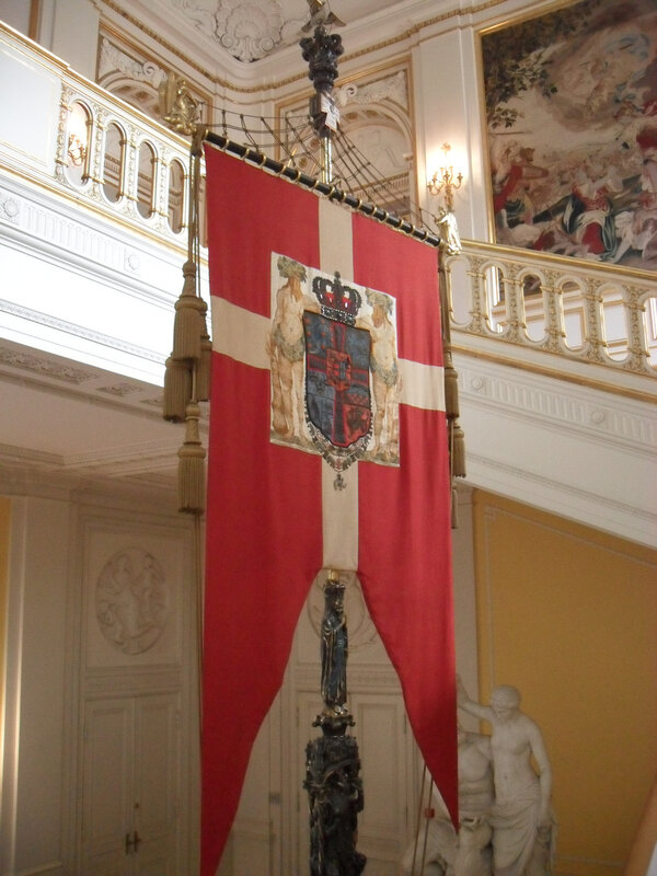 «Руїни» - це окрема, периферійна частина палацового комплексу, доступна для перегляду відвідувачами. Головне - палати власне палацу. Купивши квиток і надівши бахіли (вони видаються при вході), я відправився оглядати інтер'єри Кристиансборг. Що мені відразу імпонувало в цьому палаці - його просторість. Чомусь саме ця риса якось особливо запам'яталася. Спочатку велике враження справляє датський Королівський штандарт: