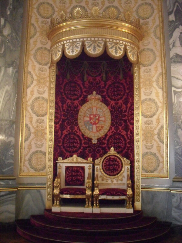 Їх охороняють три геральдичних лева в рішучих позах. Трон Короля зроблений в 1665 році з зуба нарвала; трон Королеви - в 1731 році зі срібла. Леви, до речі, теж срібні.