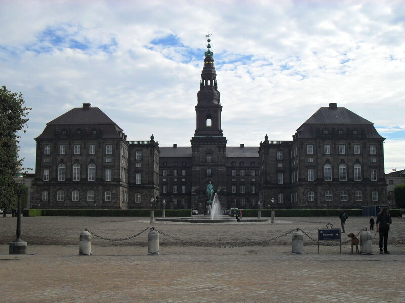 Фотографія у мене вийшла досить темна, що відповідає його суворому минулому. Переказ історії палацу зайняв би надто багато часу і місця в запису; скажу лише, що за свою більш ніж 8-вікову історію декілька разів повністю або частково перебудовувався, зазнавав руйнувань і реставрація. Простежити його історію можна в спеціальному музеї «Руїни Кристиансборг». Я не любитель дивитися на старі камені і руїни (все одно вони толком не сприймаються), але почитати інформаційні таблички було дуже пізнавально. Запам'ятав, наприклад, що такі монументальні будівлі будували в Копенгагені в основному з пісковика (в найстаріші часи) або пізніше з граніту.