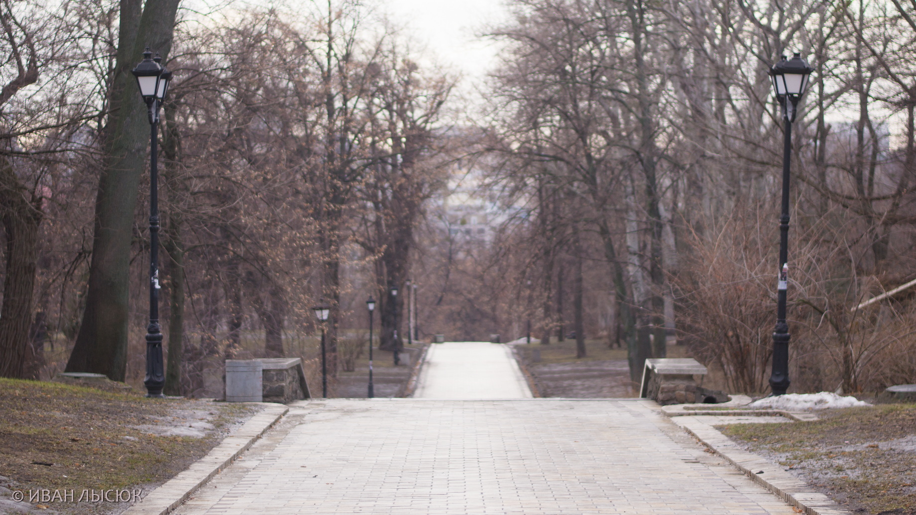 Гарний парк в самому центрі Києва, що піднімається прямо від Європейської площі, але при цьому вельми людний. Тут в нашому розпорядженні - мальовничі алеї, оглядові майданчики і просто види на Дніпро і Лівий берег, ліхтарики, драбинки, лавочки. Тут же розташований всім відомий Місток закоханих; поруч - огорожа стадіону "Динамо", арка Дружби народів (велика веселка).