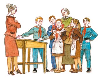 Він комусь подзвонив, і через якийсь час вийшла немолода вже жінка, дуже схожа на саму-саму добру вчительку. Вона була в окулярах. Я не пам'ятаю, як її звати, але коли ми познайомилися, я на все життя запам'ятав її прізвище, і це було не важко: прізвище у неї була - Пушкіна. Ми з Пушкіна, і вона Пушкіна. Ось таке щасливе збіг. Вона дружелюбно і ласкаво сказала: «Ну що, хлопці, з чим приїхали, що привезли?» «Ось!» - сказали ми, розв'язали мішок, відкривши його так, щоб вона могла бачити, а хитрий дід не міг. Вона заглянула, думаю, що все зрозуміла, але це була делікатна жінка і справжній педагог, тому що вона сказала: «Давайте поки цей мішок залишимо тут, а я поведу і покажу вам наш музей». «А чи не сопрут?» - хором запитали ми і покосилися на діда. «Не сопрут», - посміхнулася Пушкіна, перехопивши наші погляди. Чи не дуже-то довіряючи Вахтер, ми зав'язали мішок, поклали його біля столу вахтера і пішли за «нашої» Пушкіної.