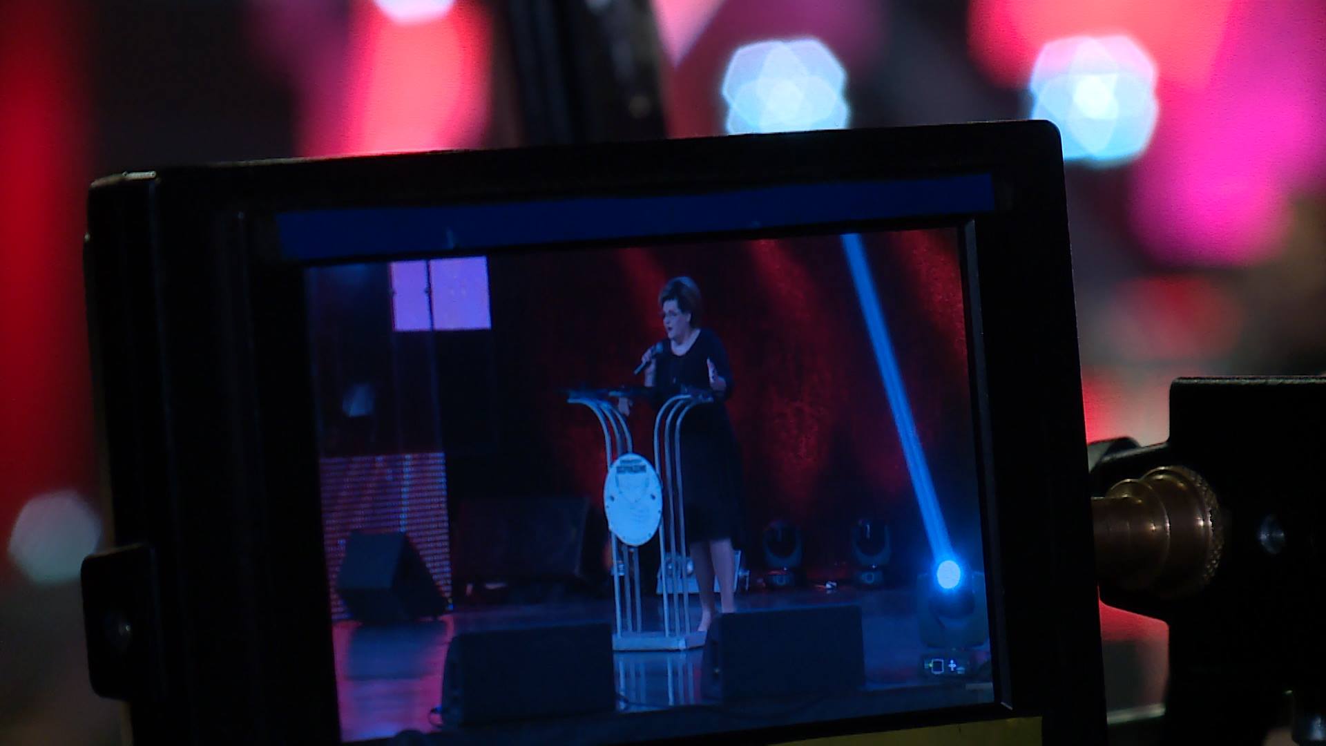 Над залом «літає» дорогий знімальний кран, по периметру залу працюють ще 5-6 відеооператорів з громіздкими професійними камерами. Тут проводять онлайн-трансляцію для однойменного телеканалу церкви «Відродження». До нас підбігає мила дівчина і пропонує на камеру висловитися про очікування від служби. Очікування у нас не найкращі, тому доводиться коректно відхилити пропозицію.