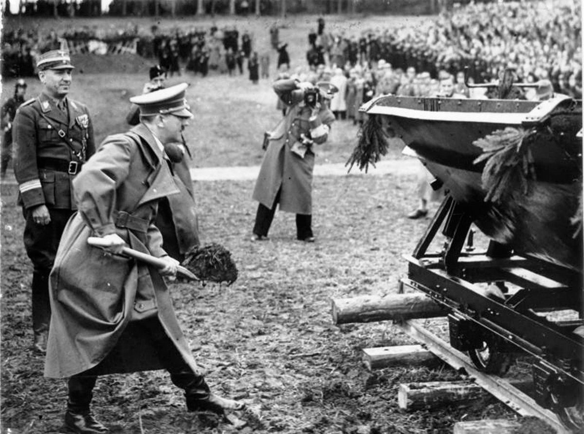 На одному з таких фото, підписаних словами «Дороги Адольфа Гітлера», фюрер кидає символічну «першу лопату» на церемонії початку будівництва траси. Таким чином, він нібито, подавав особистий приклад німецькому народові.