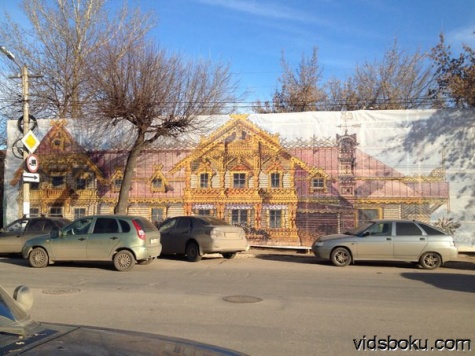 Напередодні прибуття в Саратов естафети Олімпійського вогню «Сочі-2014» старі та аварійні будівлі в центрі міста закрили банерами. Про один з таких способів благоустрою в редакцію ІА «Взгляд-инфо» повідомив житель обласного центру Володимир Шараев.
